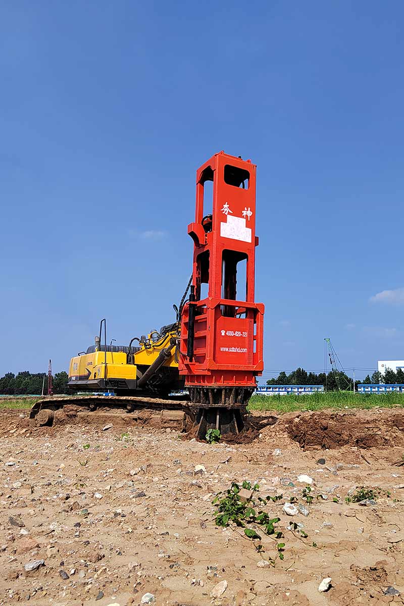 多功能液壓振動(dòng)夯,又稱振動(dòng)錘、挖掘機(jī)打樁機(jī)、挖掘機(jī)改裝打樁機(jī)等。挖掘機(jī)改裝多功能液壓振動(dòng)夯可打6米、9米、12米、15米、18米長的鋼板樁,以及10米以內(nèi)的水泥預(yù)制樁。多功能液壓振動(dòng)夯主要由輔助臂、旋轉(zhuǎn)連接支架、主機(jī)箱、夾具、管道五部分組成。挖掘機(jī)多功能液壓振動(dòng)夯源于挖掘機(jī)液壓系統(tǒng)液壓,通過專利技術(shù)安裝變頻液壓管道。它可以導(dǎo)出主動(dòng)力,加速流量。