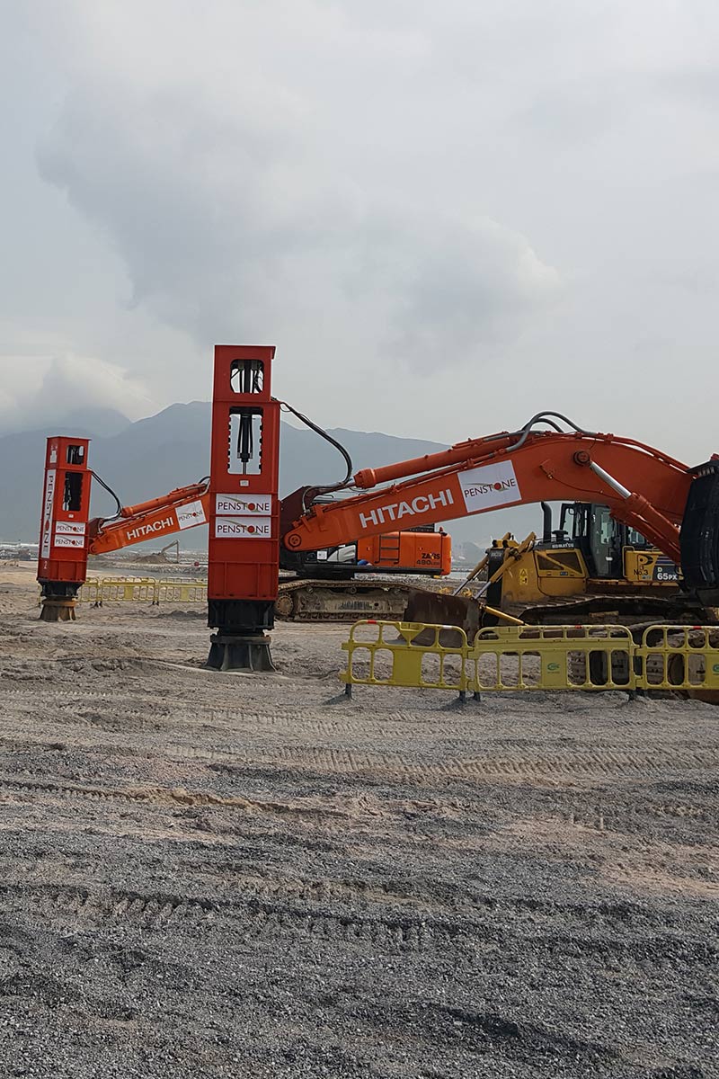 夯神VC-D系列多功能液壓振動(dòng)夯實(shí)機(jī)為夯神液壓振動(dòng)錘系列產(chǎn)品之一,是一種新型的高強(qiáng)度振動(dòng)夯實(shí)機(jī)械。采用垂直振動(dòng)壓實(shí)技術(shù)、高頻大振技術(shù),主要零部件均為進(jìn)口產(chǎn)品,激振力范圍60?600 kN。與振動(dòng)壓路機(jī)、振動(dòng)平板夯等現(xiàn)有產(chǎn)品普遍采用的圓振動(dòng)技術(shù)相比,垂直振動(dòng)壓實(shí)技術(shù)消除了圓振動(dòng)的水平擾動(dòng)力(破壞力),運(yùn)行平穩(wěn)、影響深度大、對(duì)鄰近結(jié)構(gòu)物的影響小。